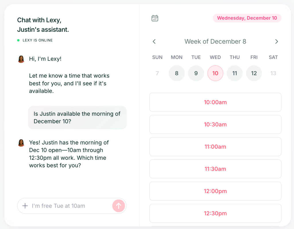 This feels like scheduling with a real human assistant, not with a form.