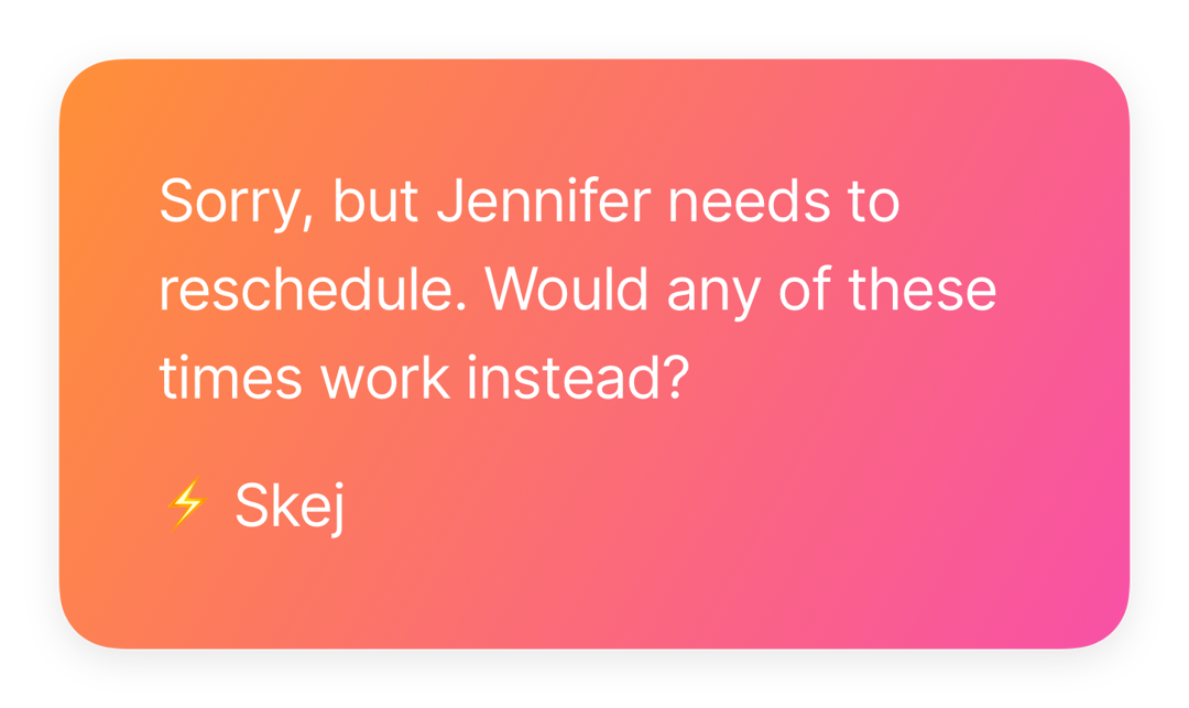 Skej can now handle multiple requests from a single message - schedule, reschedule, or cancel multiple meetings at once.